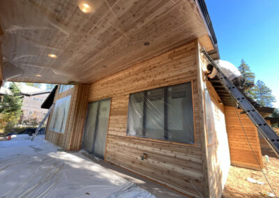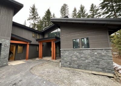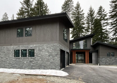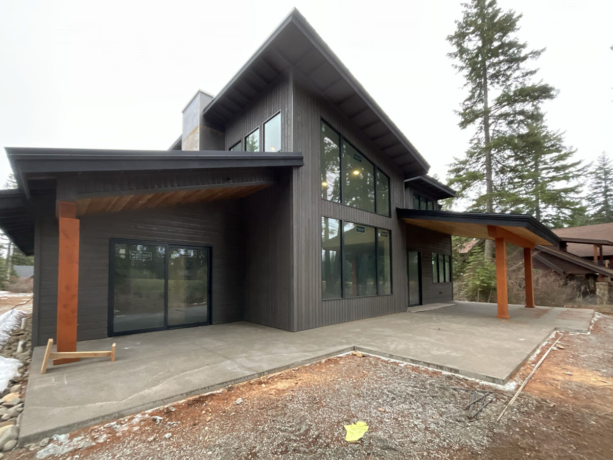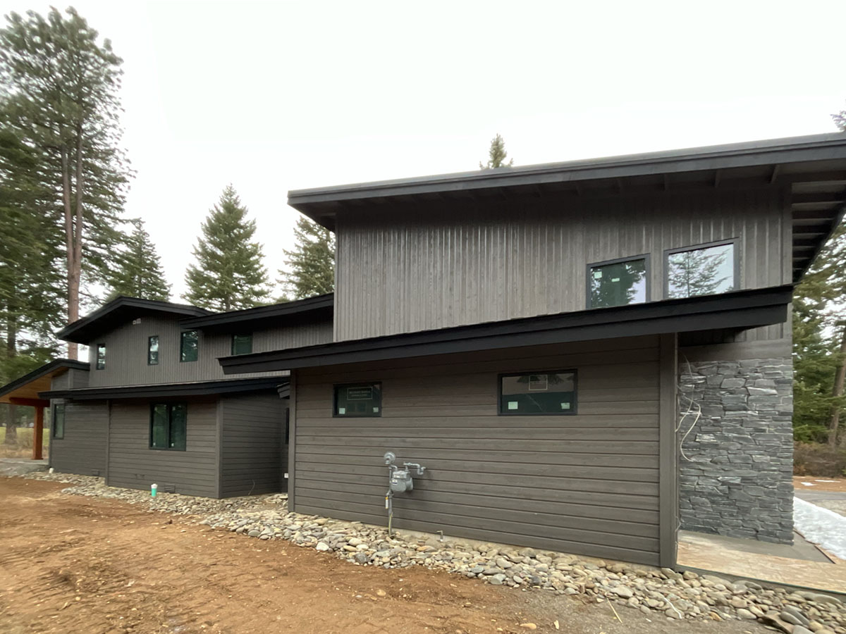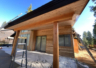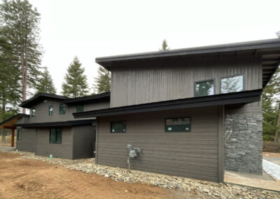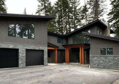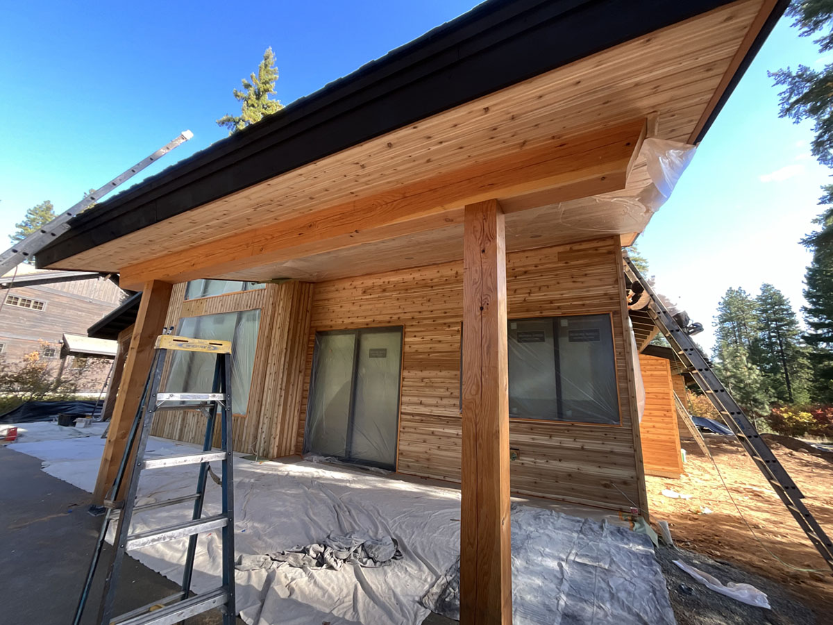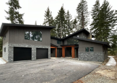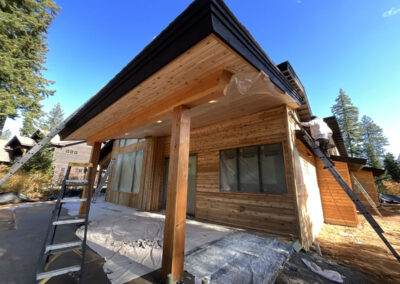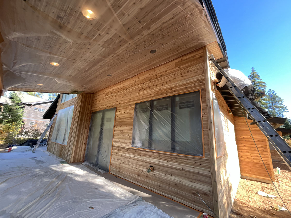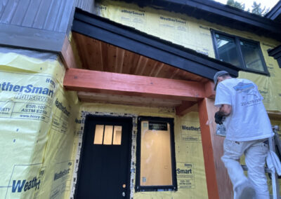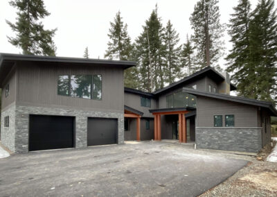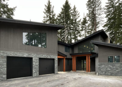 Suncadia Cabin Custom Stained Exterior Full interior, doors & millwork New construction with semi transparent body, tri-corn black trim, clear coat underneath tongue and groove…