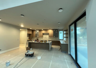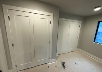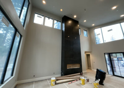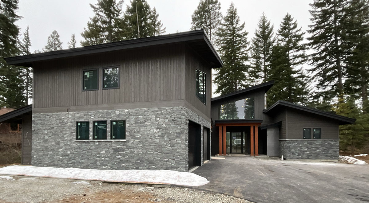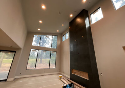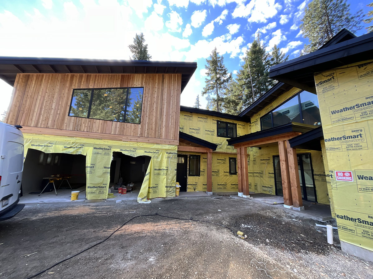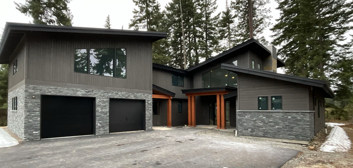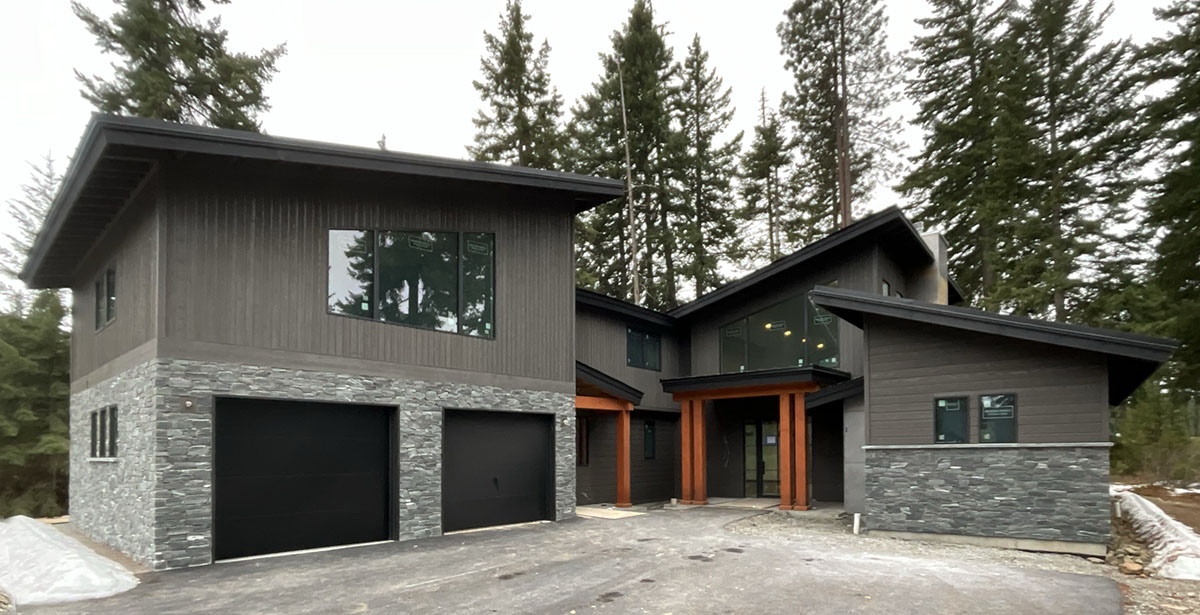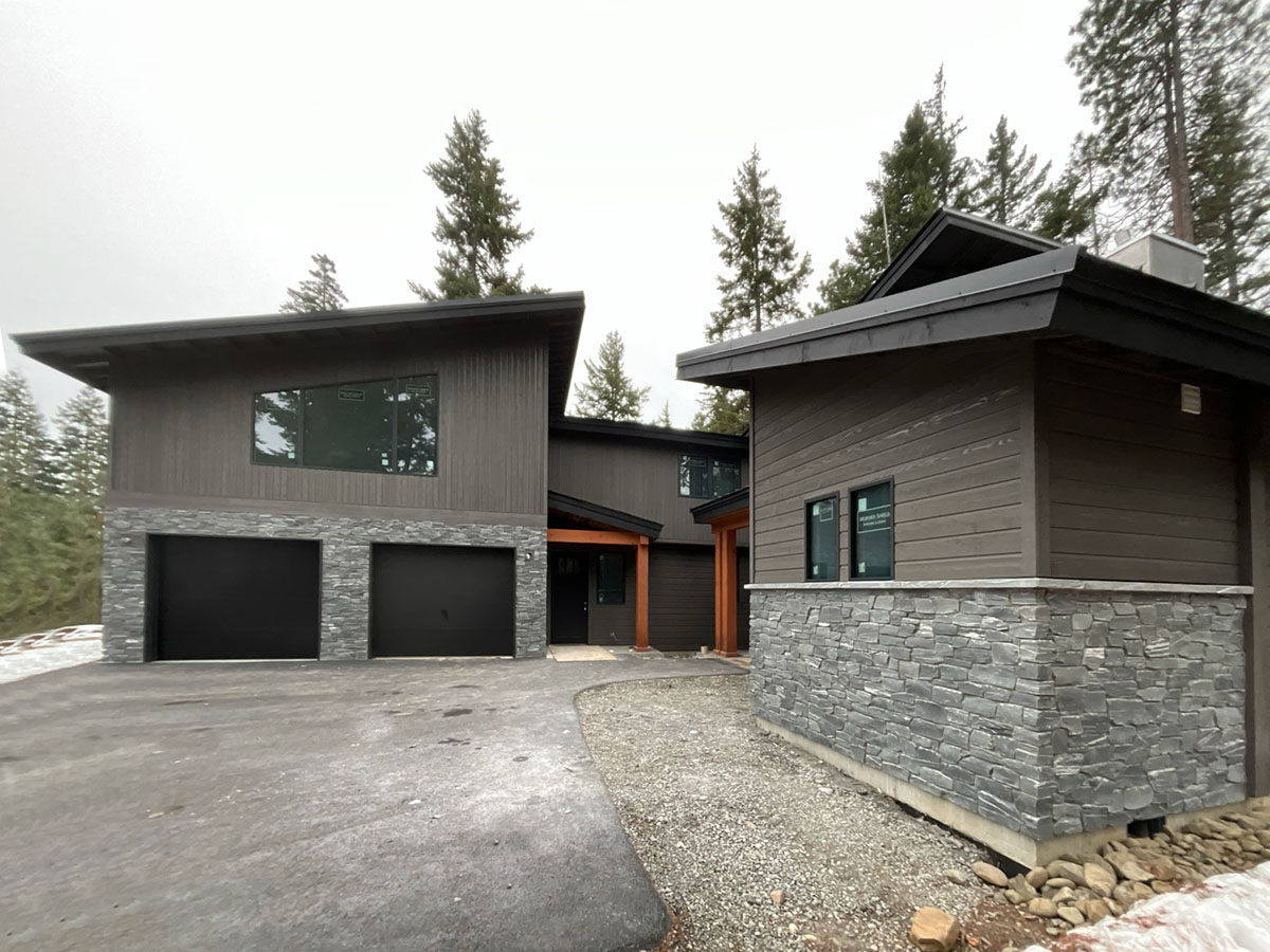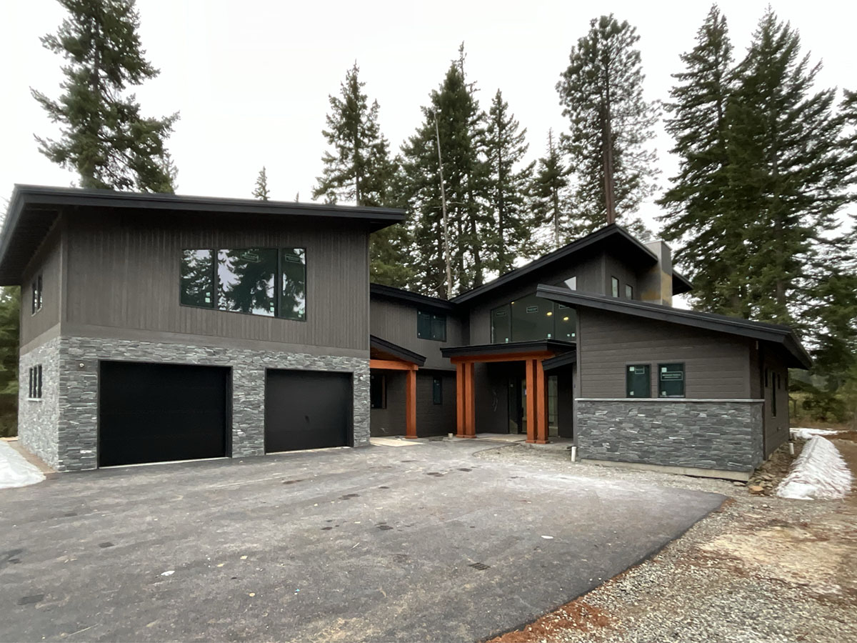 Suncadia Cabin Custom Stained Exterior Full interior, doors & millwork New construction with semi transparent body, tri-corn black trim, clear coat underneath tongue and groove…